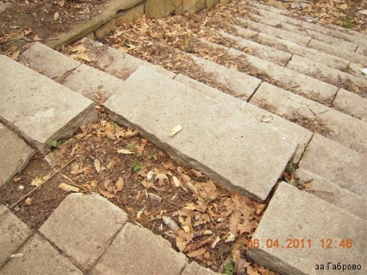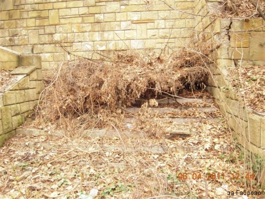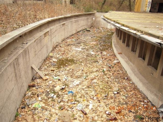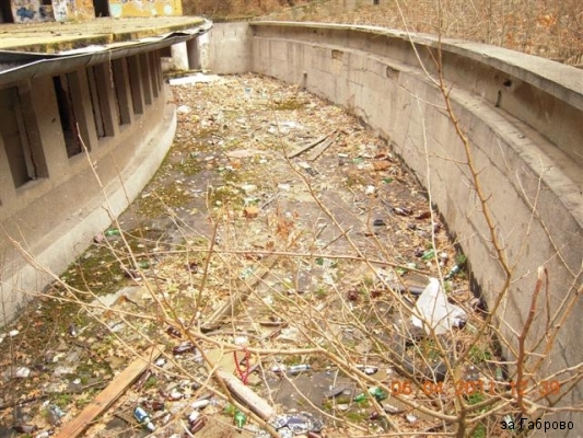 Ще видите надписи, че сградата е опасна и застрашена от самосрутване. Разгледах мястото и аз лично не смятам, че тази сграда е застрашена от самосрутване. Сама няма да падне, на мен ми изглежда доста стабилна и здрава като конструкция. Театъра е страшно разбит, но не се е случило това от самосебе си, много труд е хвърлен за да се стигне до там. Дограмата е изкъртена, кабелите са изтръгнати от стените, електрическите табла също. Тоалетните са разбити, изкъртени плочки и санитарен фаянс. От тоалетните за посетителите са взети клекалата и как няма, те са чугунени, мисля, и са тежки, отишли са на вторични. Същата участ е сполетяла, оградата и вратите към театъра, те бяха метални. Ще видите на снимките как е останала само една секция от оградата, просто две дървета са я захванали и на някого не му се е занимавало чак толкова, че да я освободи. Няма нито една здрава пейка, а на тяхно място е обрасло с дървета. Навсякъде има боклуци. Леко се изненадах като попаднах на един бездомник в едно от помещенията, той също беше изненадан от моето присъствие. Пълна разруха и абсолютно нехайство от страна на собствениците на тази сграда.